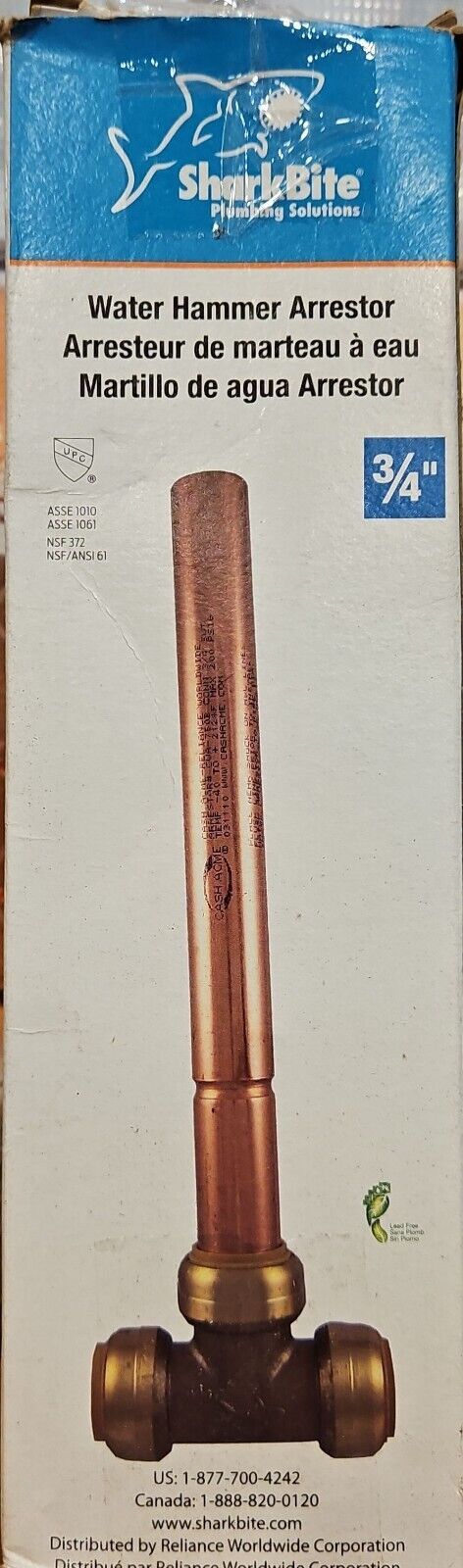 SharkBite 3/4" Copper Tee Water Hammer Arrestor Push to Connect #22632